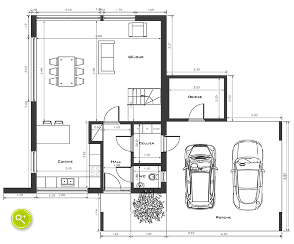 - Le rez-de-chaussée est presque exclusivement composé d'un seul espace à vivre. La cuisine, qui s'ouvre sur la salle à manger, s'organise autour d'un îlot central à la fois pratique et convivial. Un cellier permet de libérer l'espace.