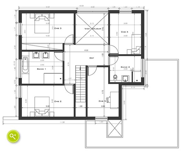- À l'étage, des chambres spacieuses donnent à chacun son intimité.